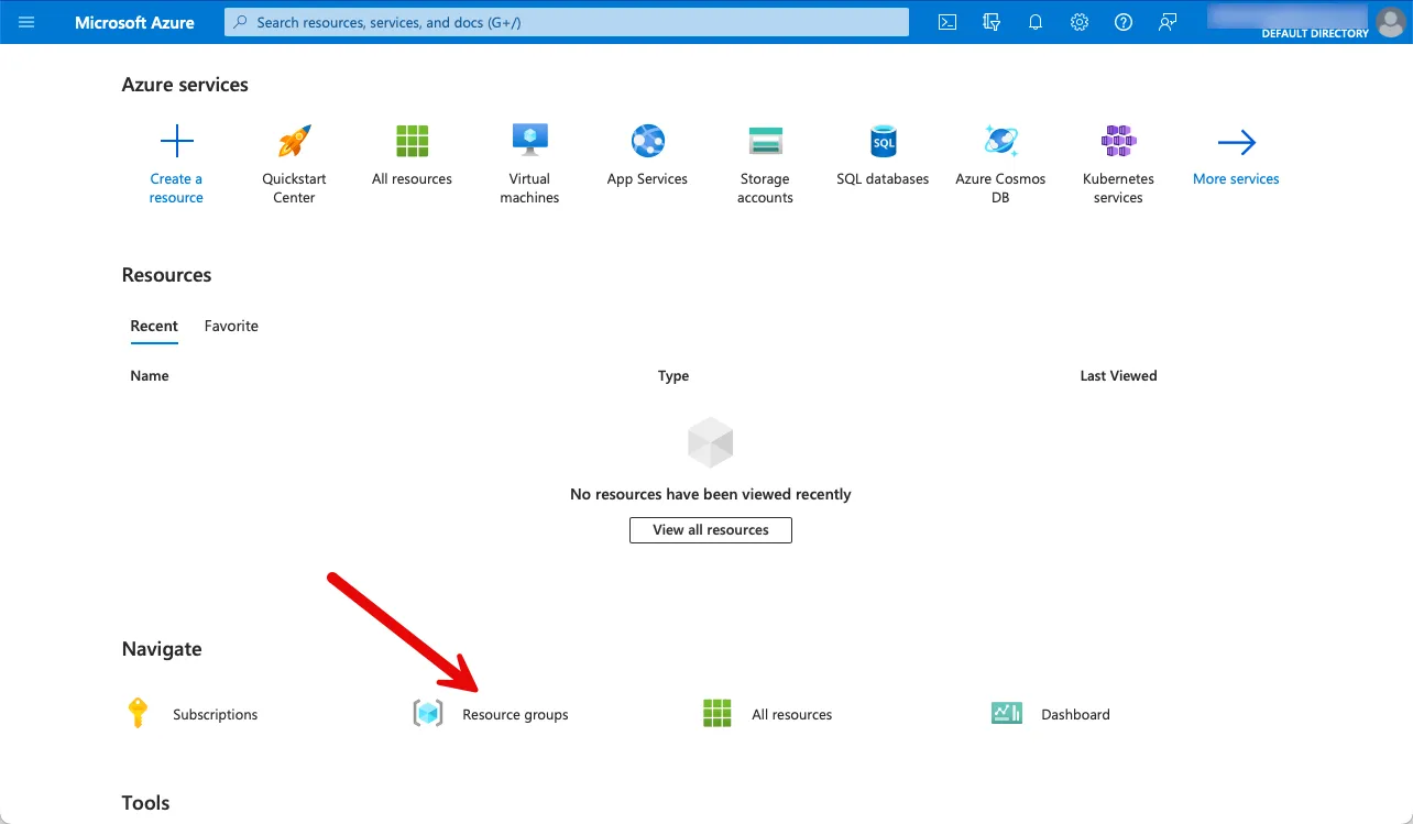 Over time, more and more resources accumulate in the portal, so it is worth keeping them in order. This can be achieved by creating resource groups and deploying the corresponding resources to these groups. The quickest way to create new resource groups is in the Home.