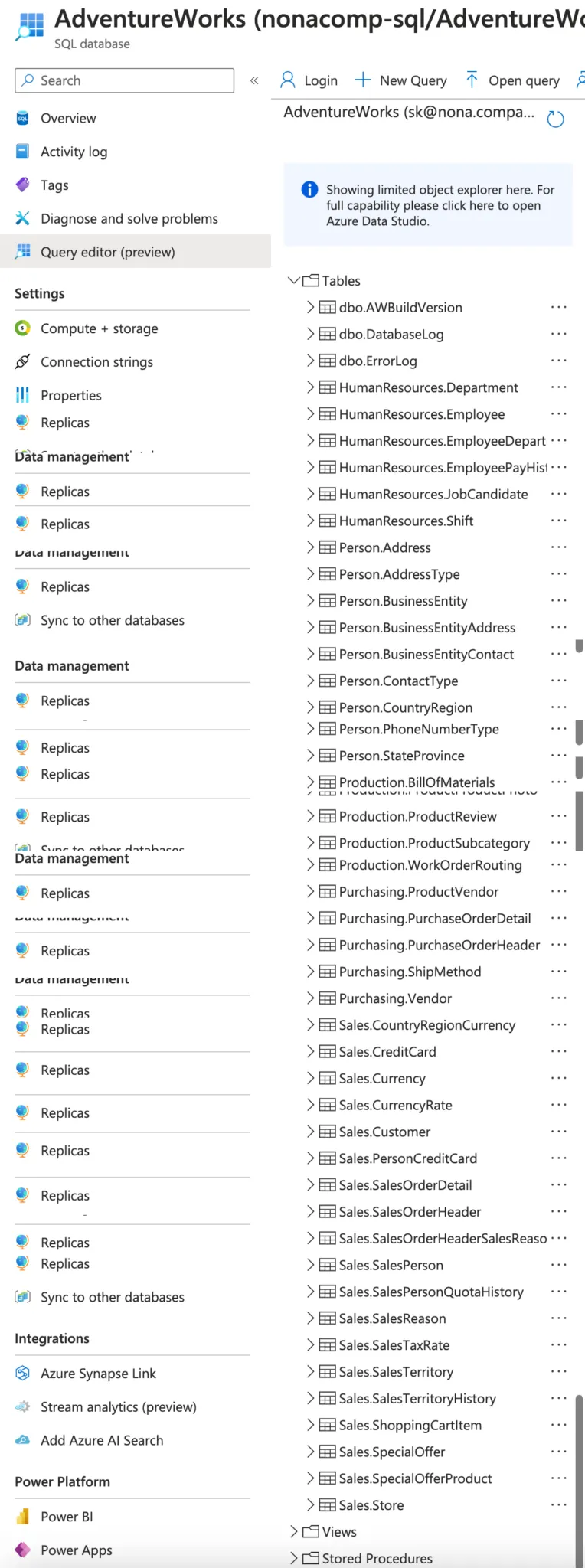 I have set up a sample environment in Azure for my students in which they can practice with the sample databases from Microsoft. The sample databases are stored in different Azure SQL databases. There are 4 databases in total: