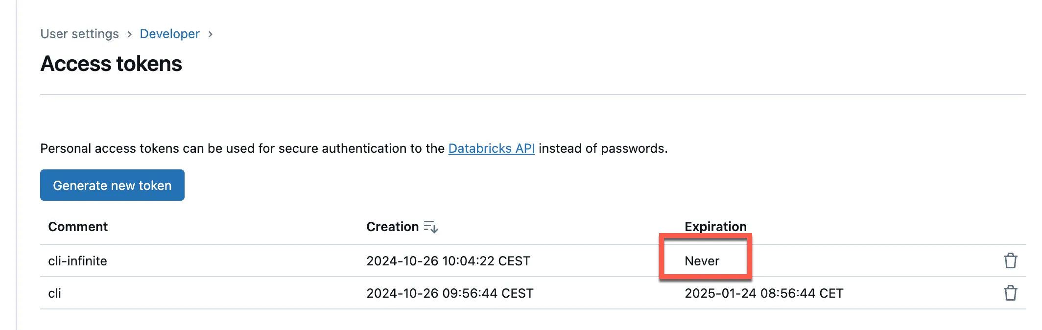 The advantage and disadvantage of this method is that the token is saved in plain text in the .databrickscfg file. You should, therefore, refrain from using this method on a shared computer.