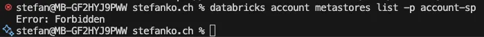 However, I do not get a value back here, but with the dev profile, I get the information. Again, a missing authorization is the problem. In the Databricks workspace, I add the service principal to the administrator group: