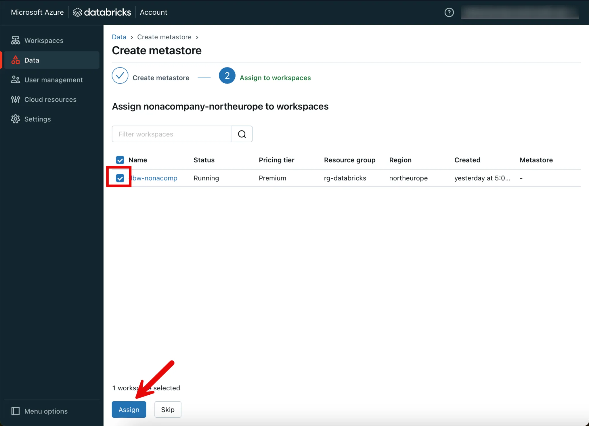 In the next step, I will assign the newly created metastore to the Databricks workspace, which I created as a priority.