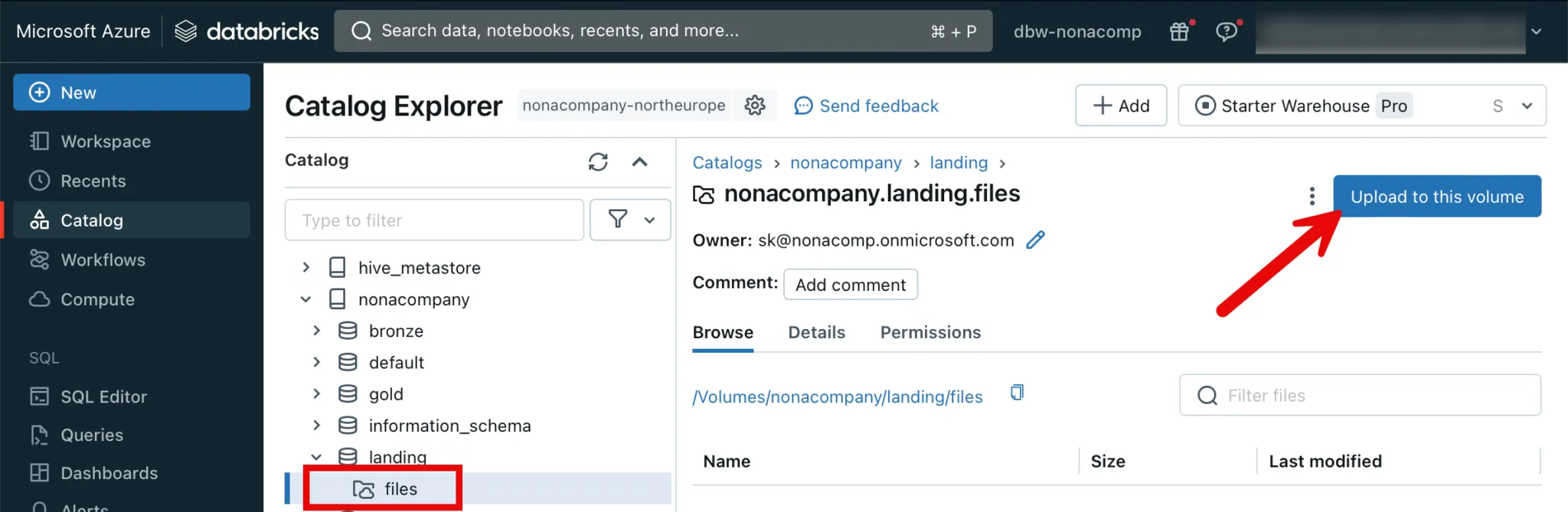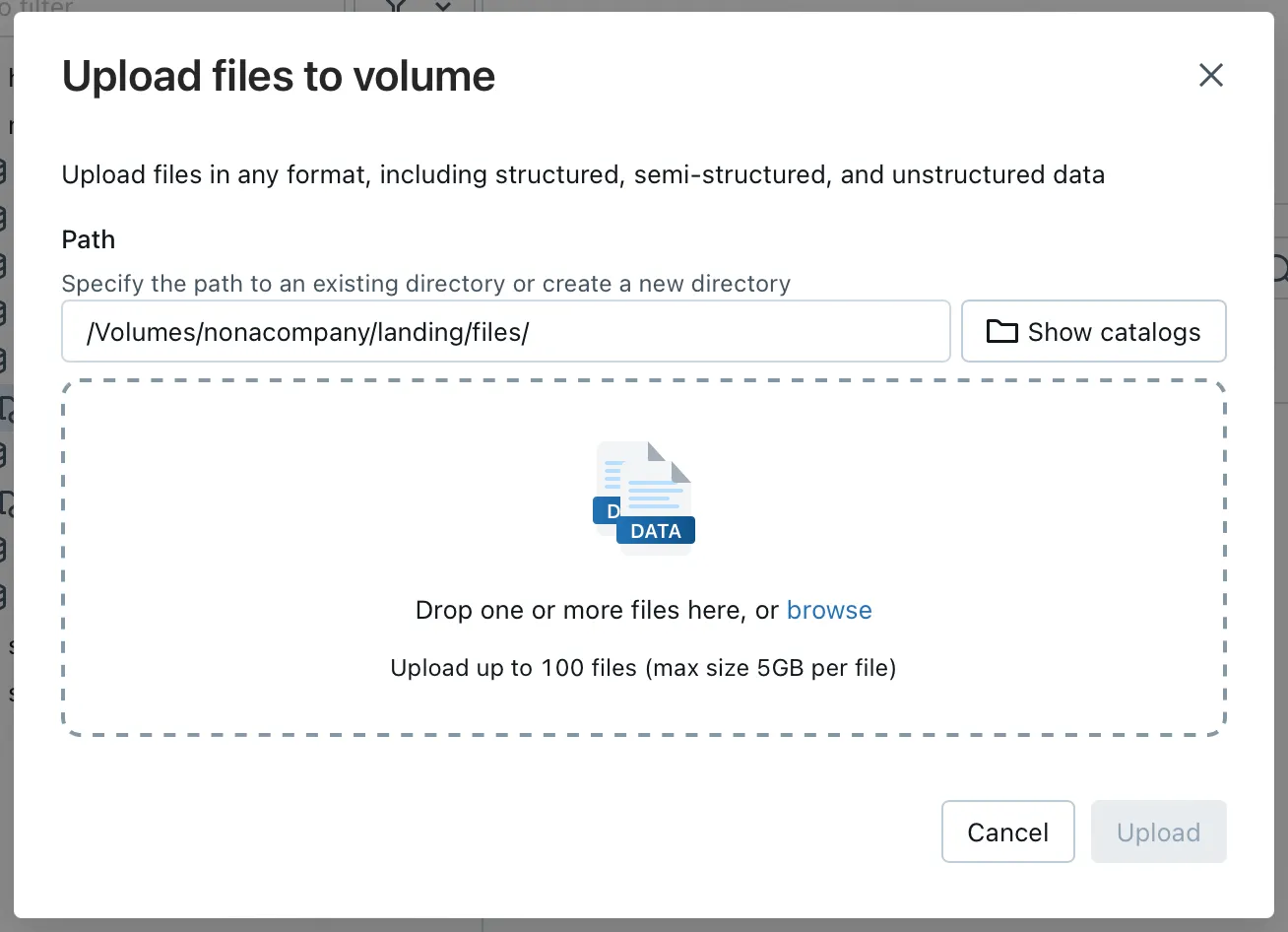 There are several ways in which files can be uploaded to a volume. For example, a data factory can be used, which uploads files directly to the storage account container. Or there is also the option of uploading files directly in the Databricks Workspace. However, this is a manual process and therefore “cumbersome”.