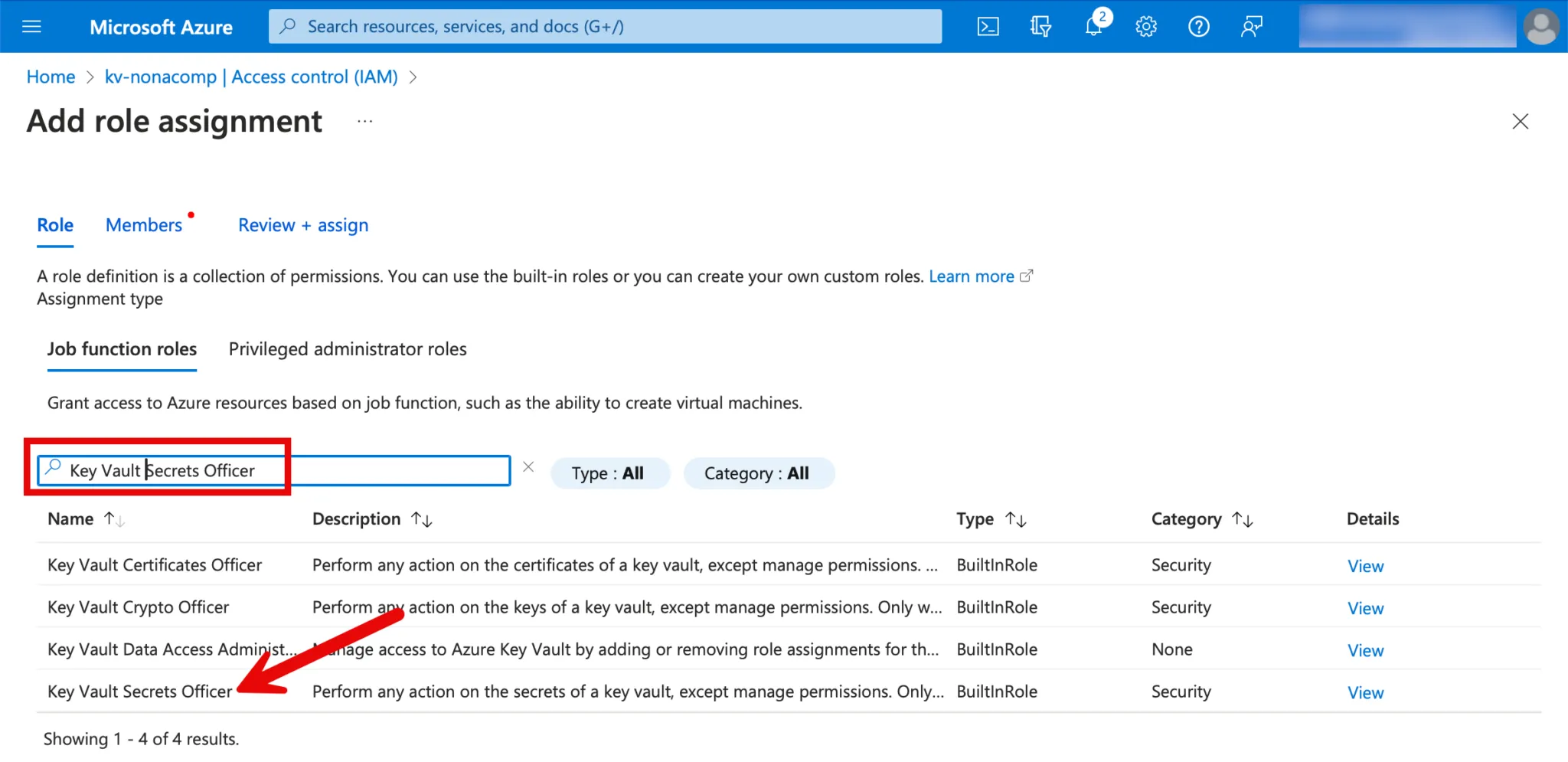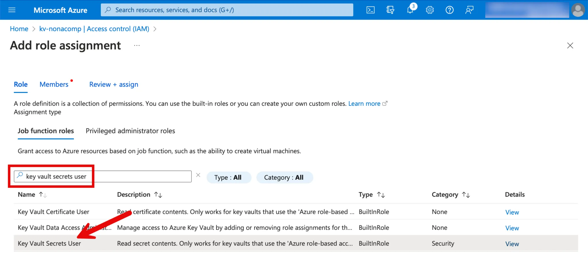 For groups/users who should only have read-only rights, we assign the role “Key Vault Secrets User”.