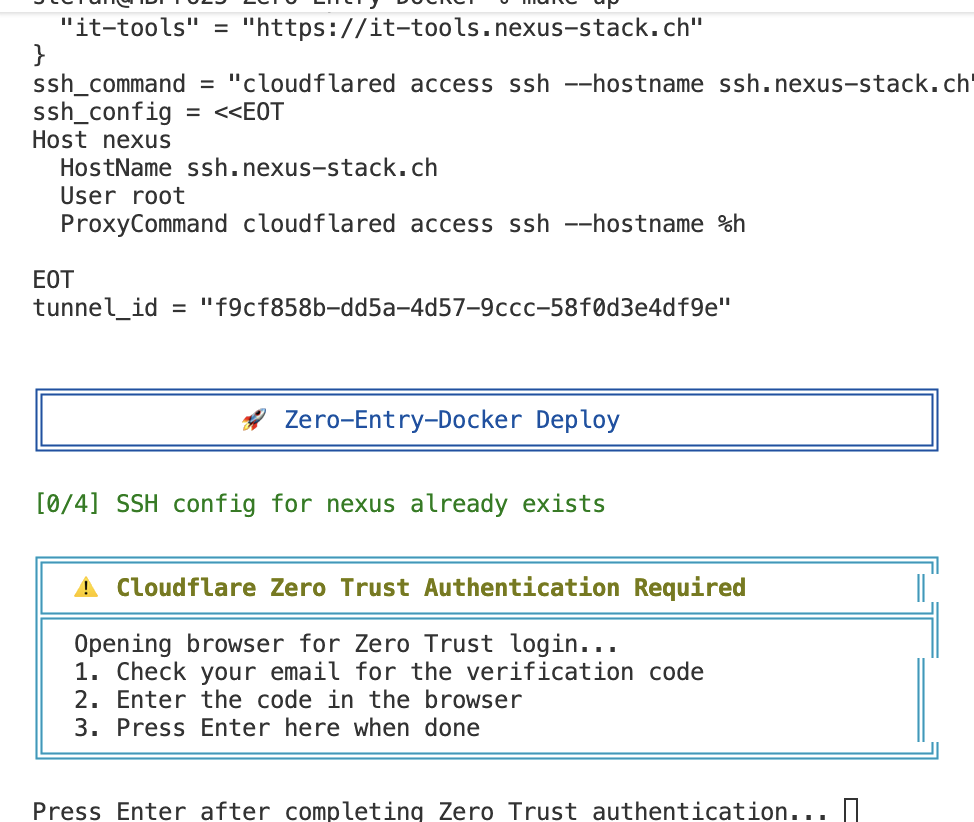 When the script starts, it pauses at the point where it wants to log in to the server via SSH. This is when you need to authenticate via Cloudflare Zero Trust.