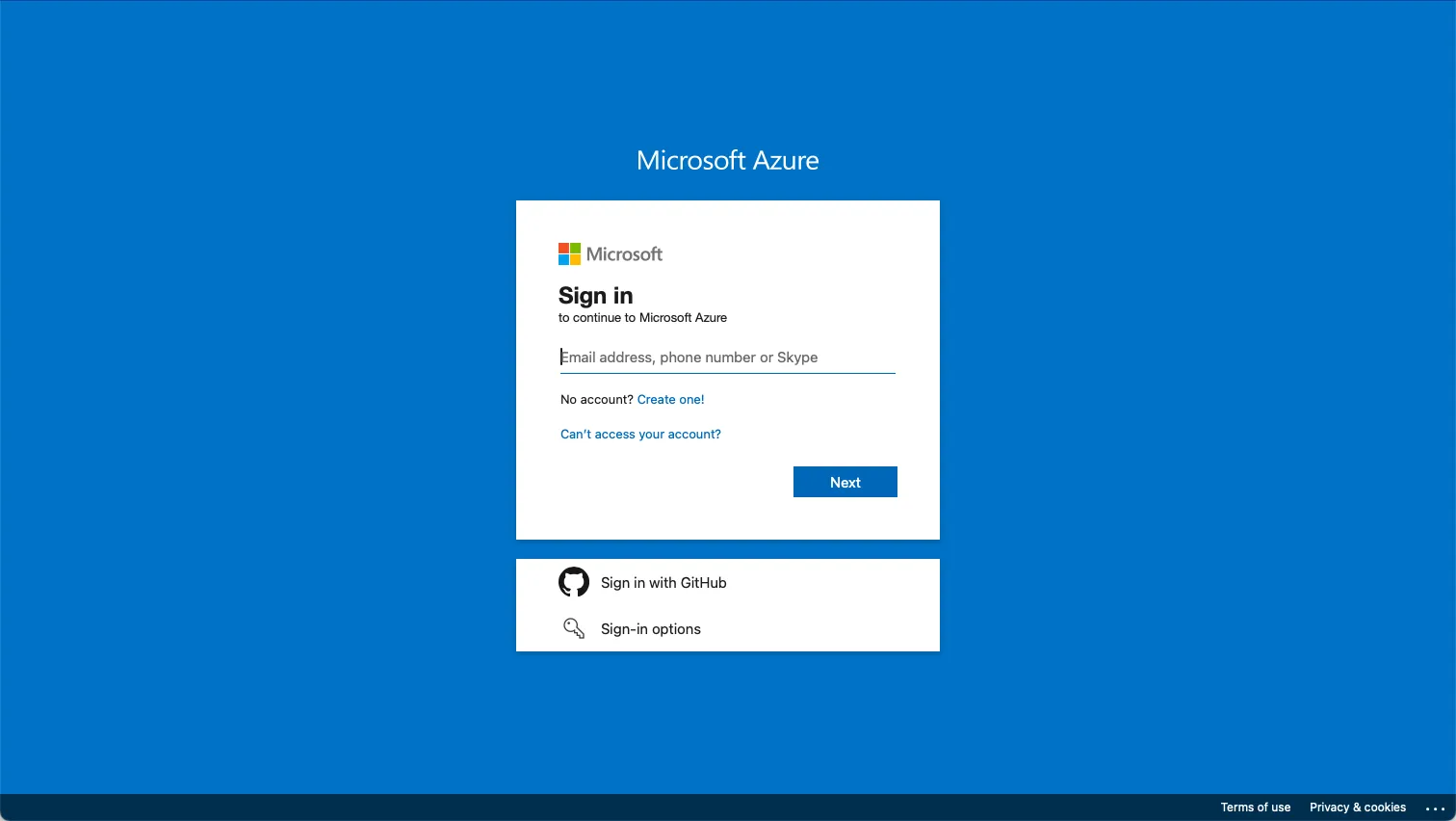 The easiest way to administer the Azure Cloud is via the Portal. When you call up this page, a Microsoft login window appears.