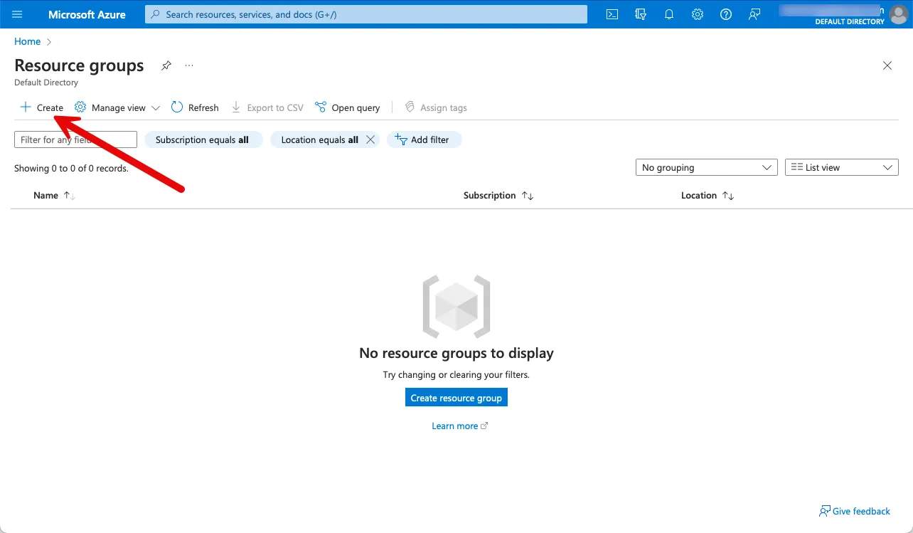 Over time, more and more resources accumulate in the portal, so it is worth keeping them in order. This can be achieved by creating resource groups and deploying the corresponding resources to these groups. The quickest way to create new resource groups is in the Home.