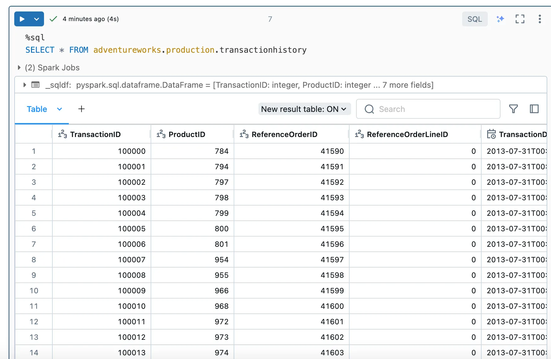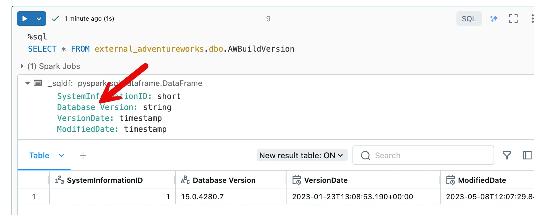 With this setup, you can address the external source directly within Databricks Lakehouse. For example, I have queried the person.person table from the AdventureWorks DB.