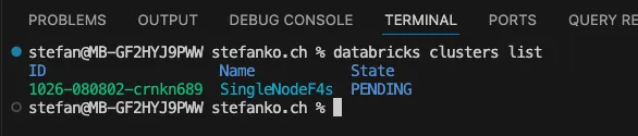 Now, I configure the Databricks CLI by typing the following command in the terminal. I usually use the integrated Visual Studio Code terminal.