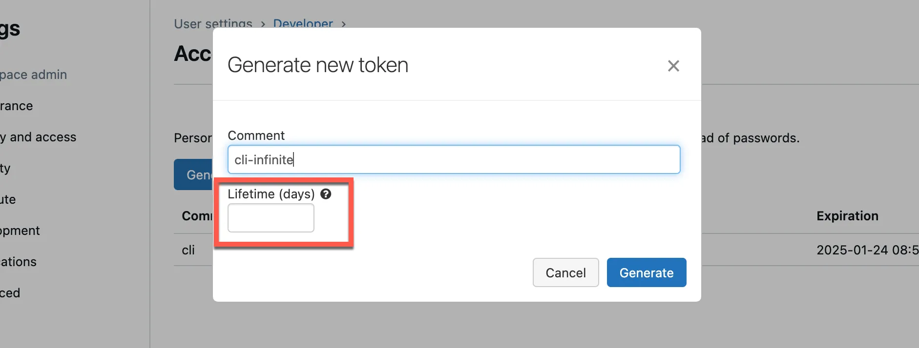 If you leave the Lifetime field empty, you can have a token created that remains valid indefinitely. However, there are better practices than this.