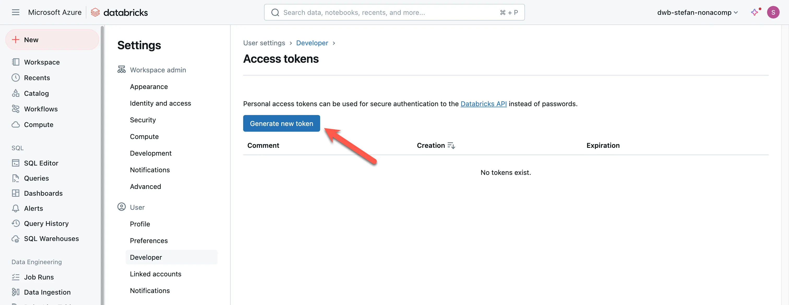 Choose an interactive method if you do not want to create a token. To do this, enter the following command, once with and once without the workspace URL: