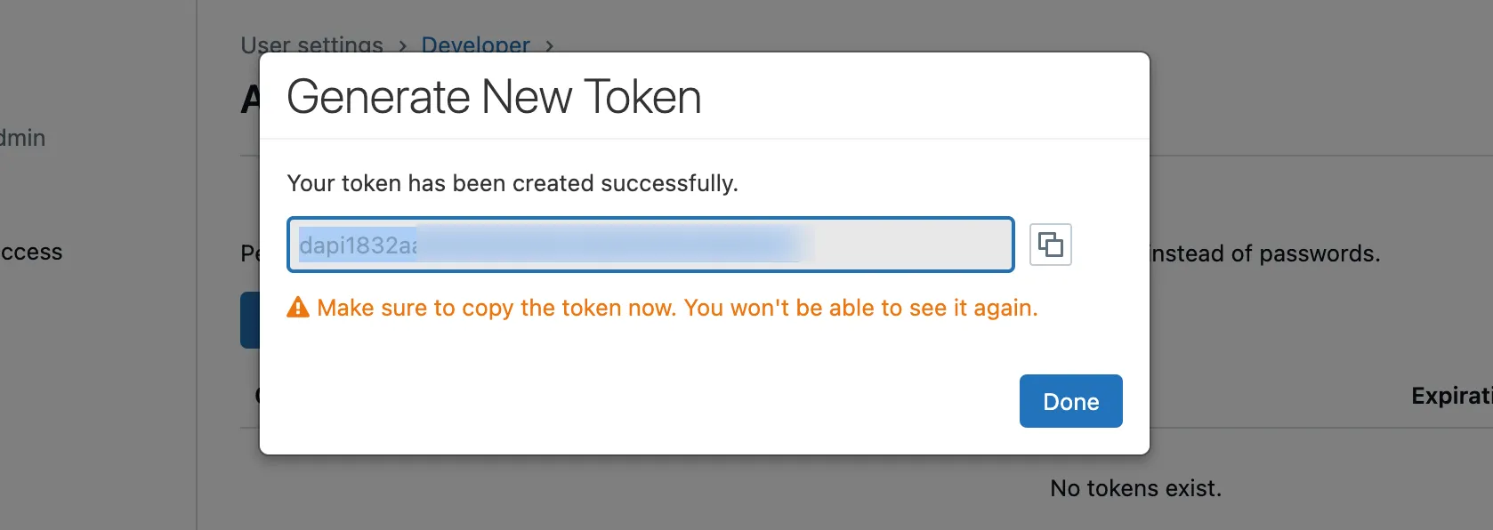 After I have created a new secret, it will be displayed once, and you can copy it.