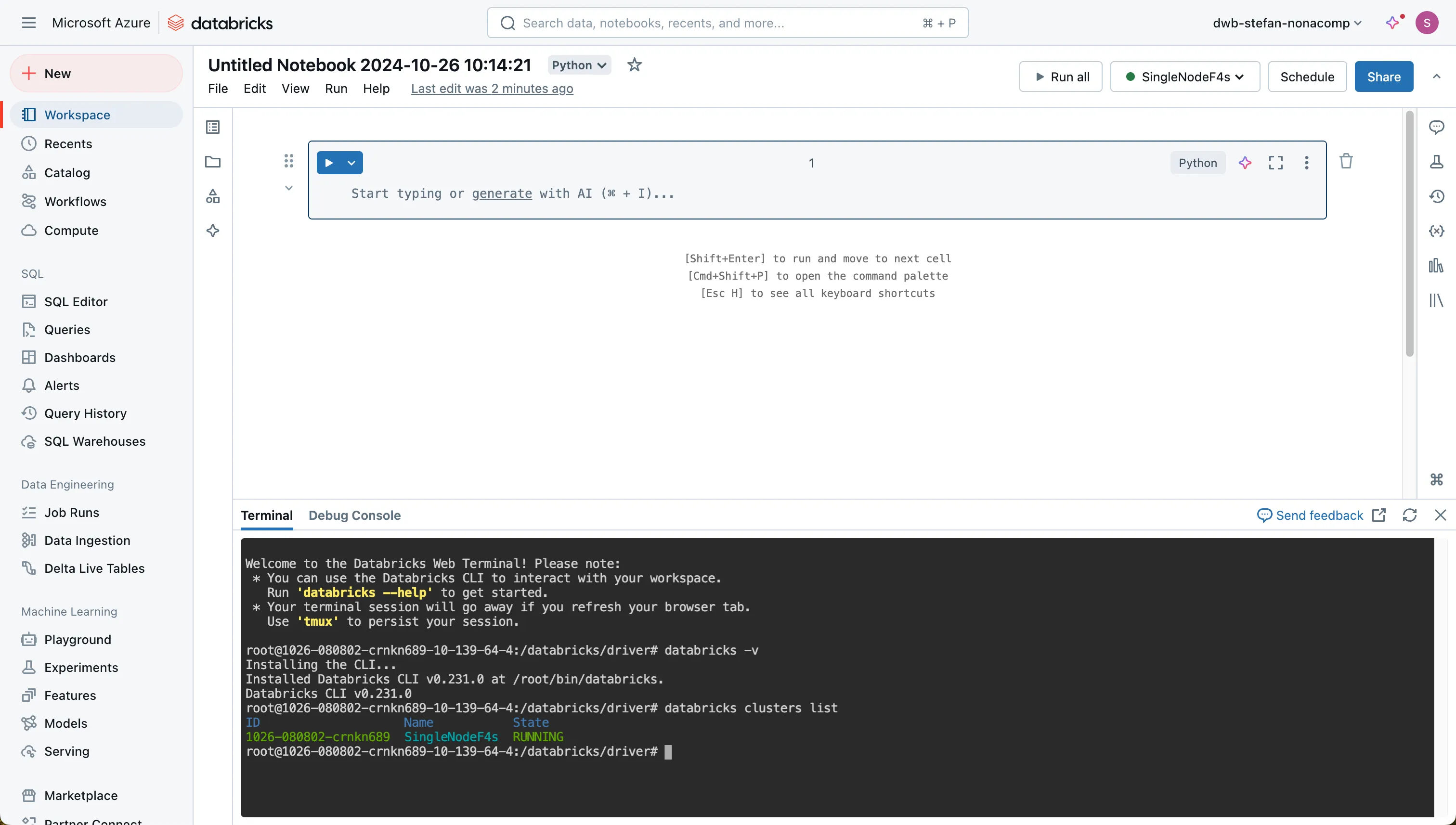 More Infos: https://learn.microsoft.com/en-us/azure/databricks/compute/web-terminal#cli-workspace