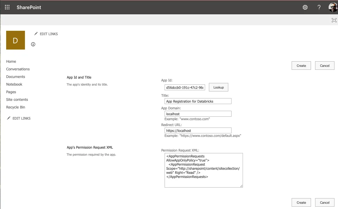 To allow Databricks to access SharePoint, I use an App Registration in Azure – a Service Principal that authenticates against the Microsoft Graph API. This app is granted the necessary permissions (e.g., Sites.ReadWrite.All) to read and write files in SharePoint. Access is handled via an access token used within my Databricks notebooks, with no need for interactive logins or manual approvals. This creates a secure and fully automated connection between Databricks and SharePoint.