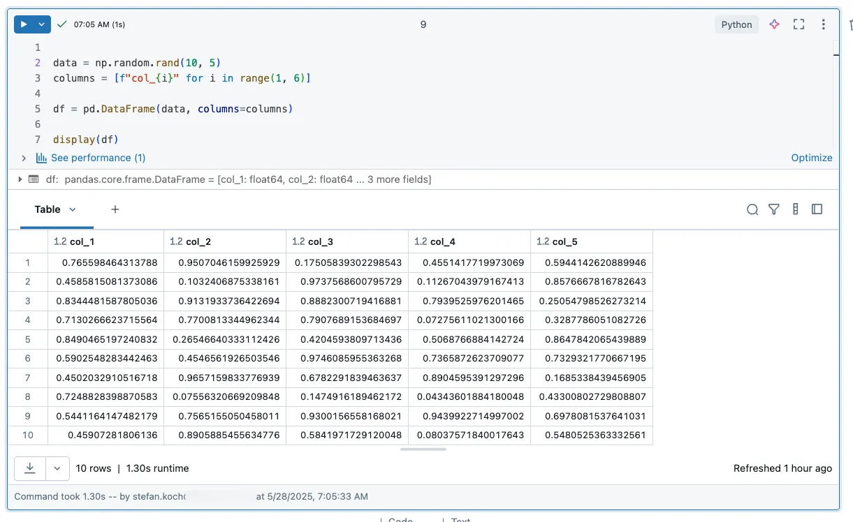 In the following example, I want to write to SharePoint from Databricks. To achieve this, I generate some random data and store it in a dataframe.