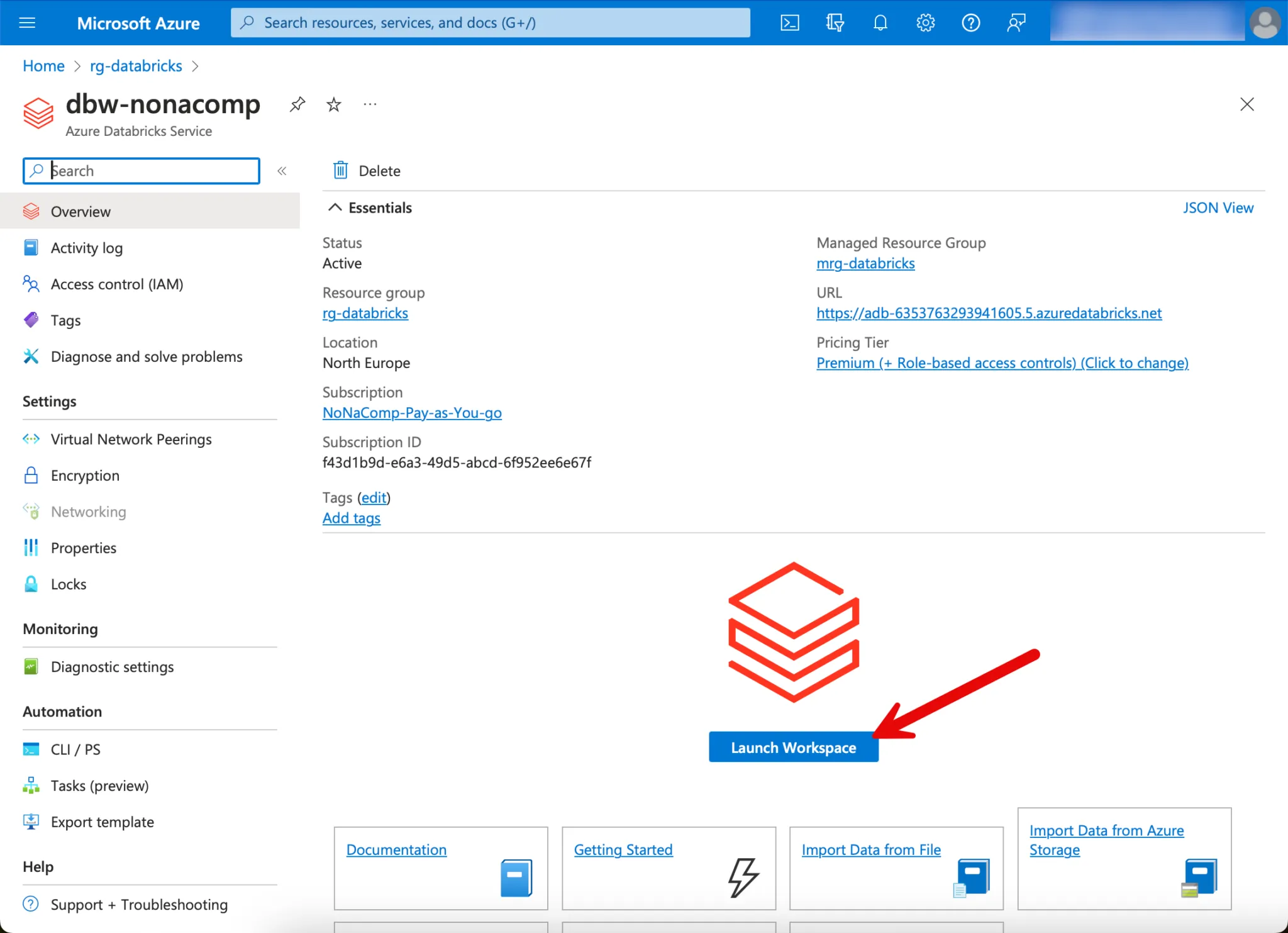 🚨🚨🚨 Attention! Be sure to select Premium for the pricing tier!🚨🚨🚨 Otherwise, not all functionalities are available in the workspace and Unity Catalog cannot be used with the standard version.