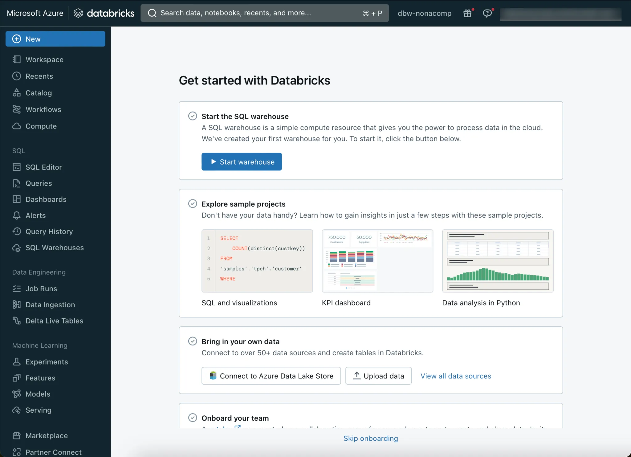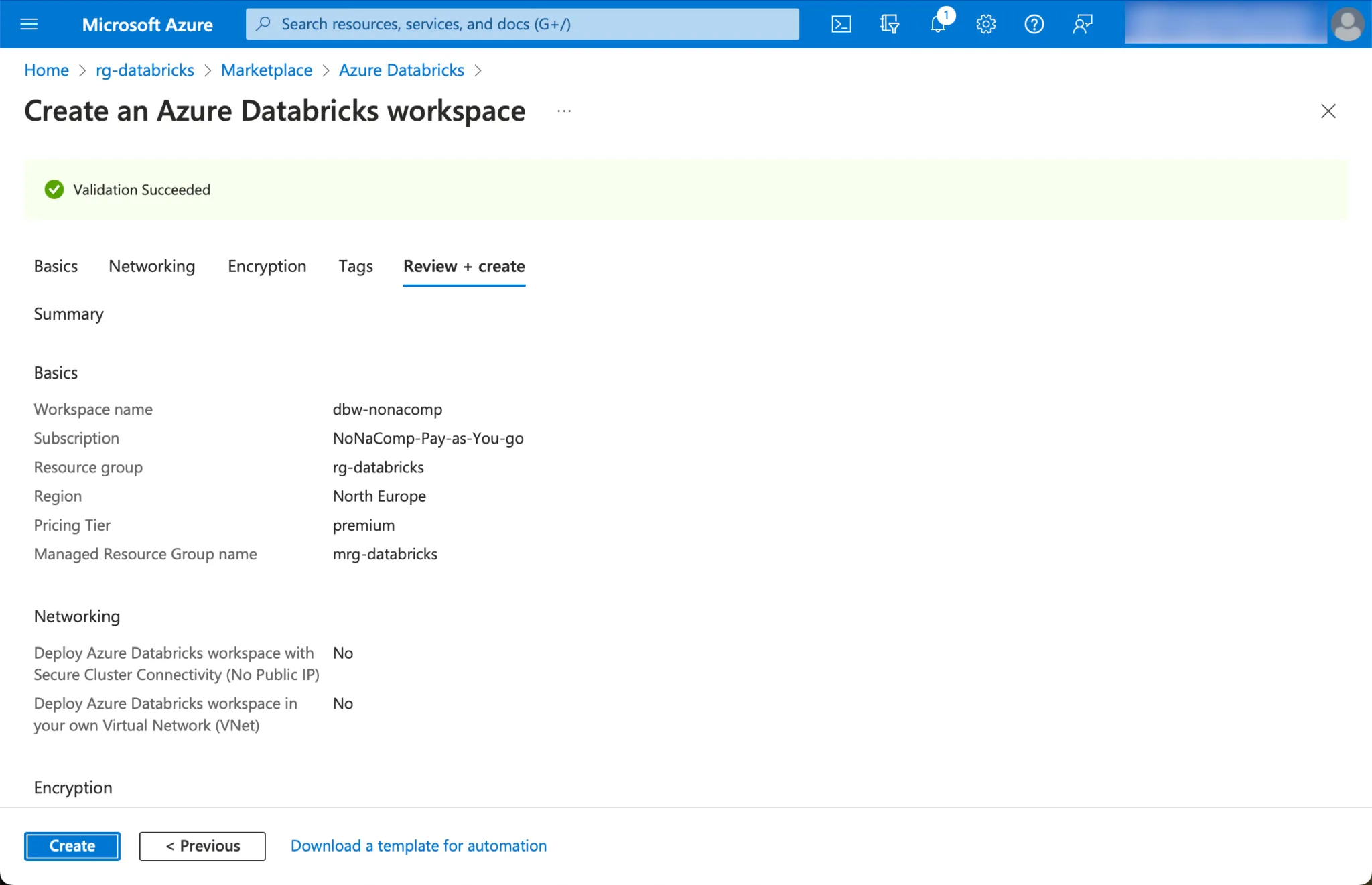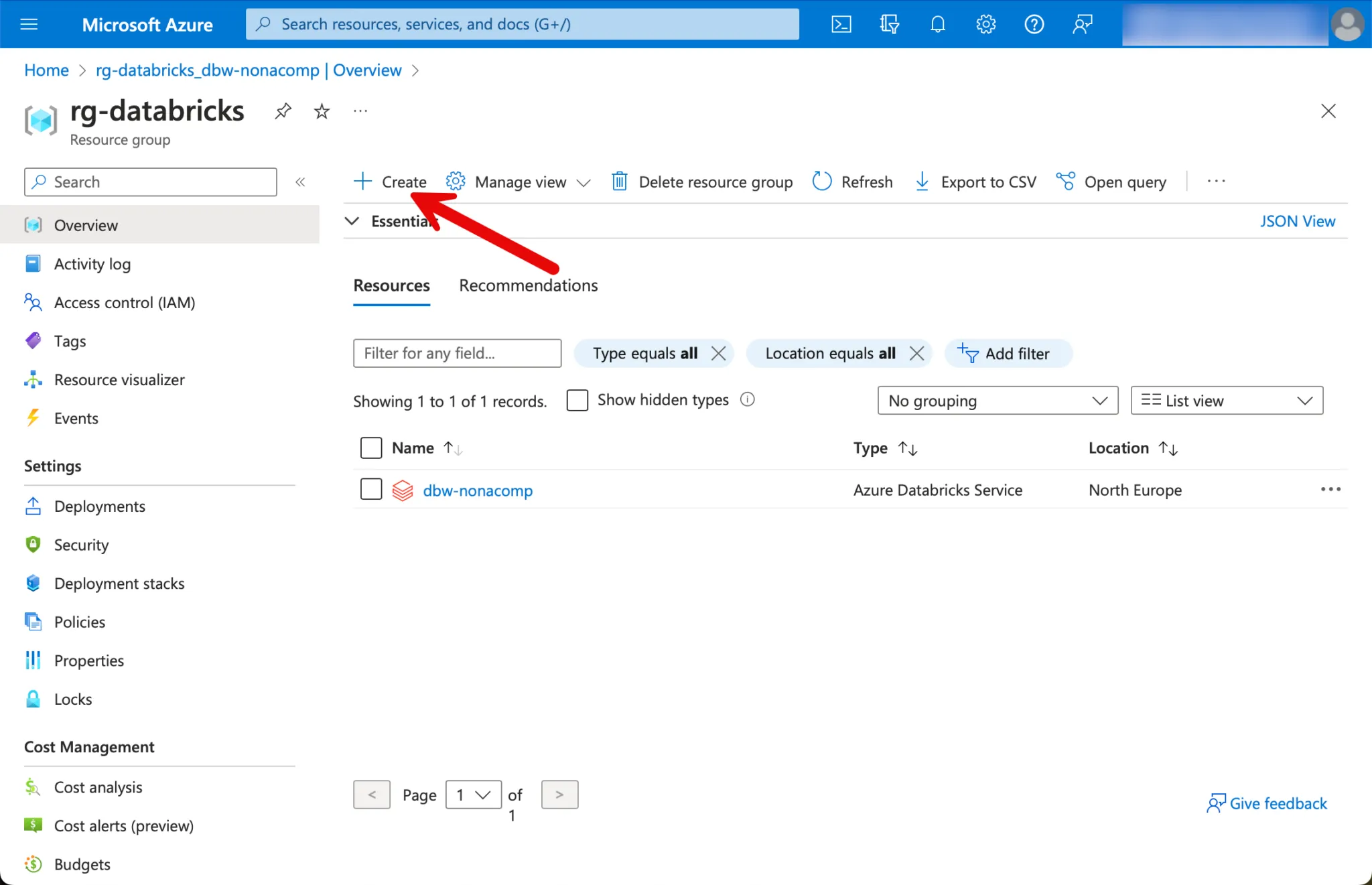 Of course, you can take your first steps with Databricks with the Community Edition of Databricks, which is available free of charge.However, this environment has various limitations, for example no Unity Catalog and various other functionalities are also missing. I therefore recommend creating a Databricks setup in your own environment in which you can test all functionalities. No major costs are generated for operation, as small clusters can be used for most tests.