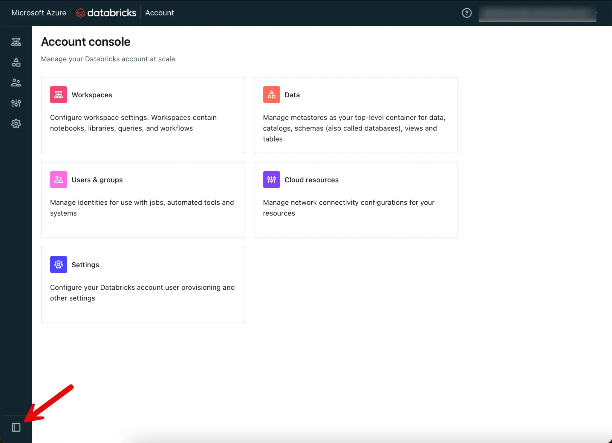 In order to set up Unity Catalog, you must log in to your Databricks account. This is done by clicking on the corresponding menu item of my user.