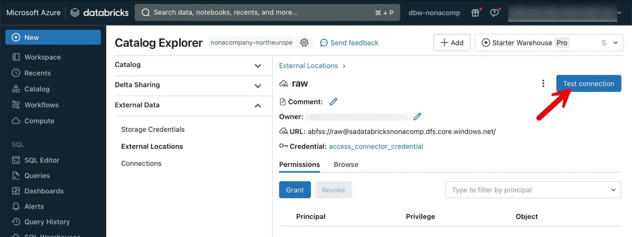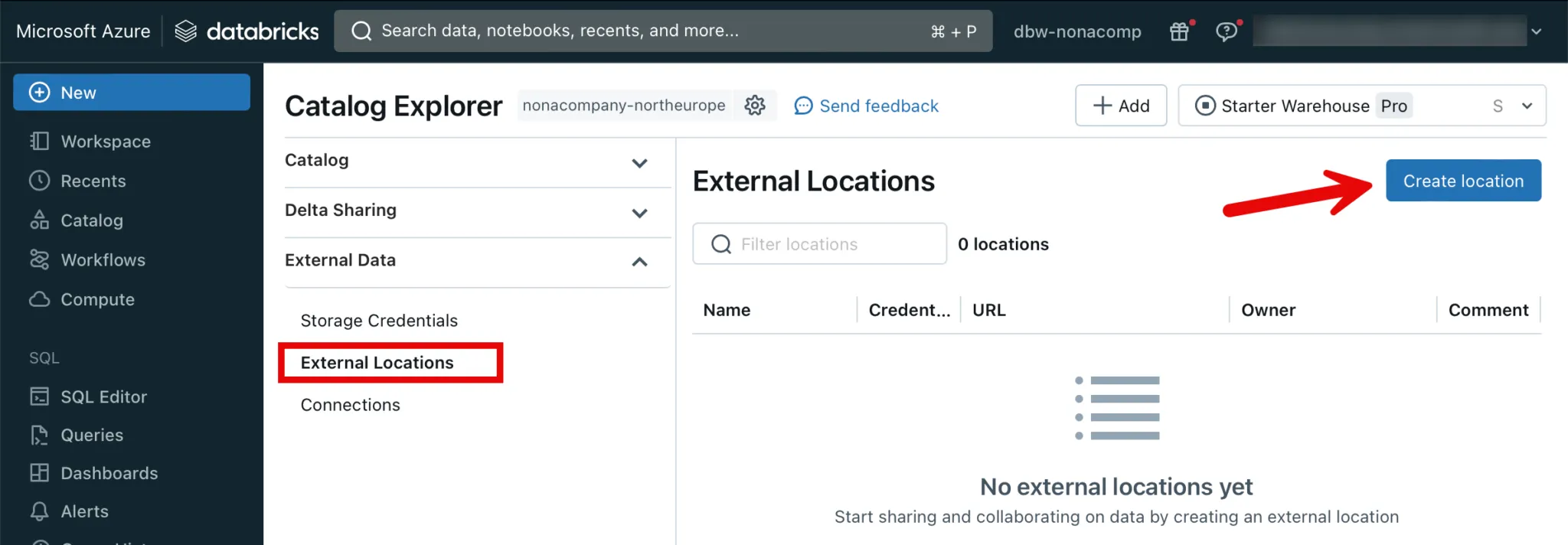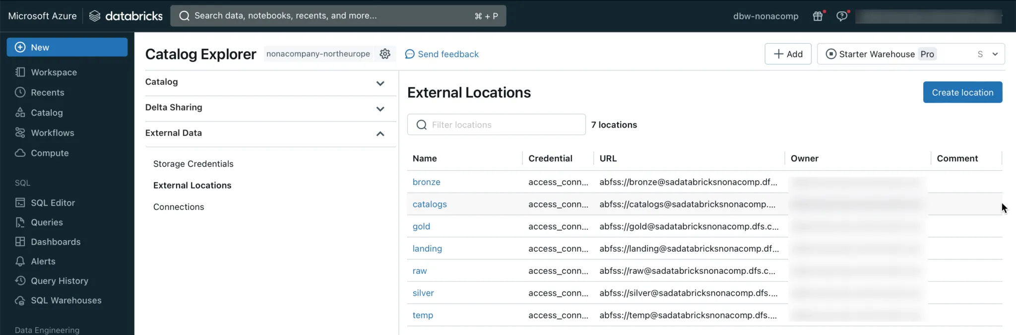 Now I repeat the step for all external locations. At the end, the following external locations should be present: