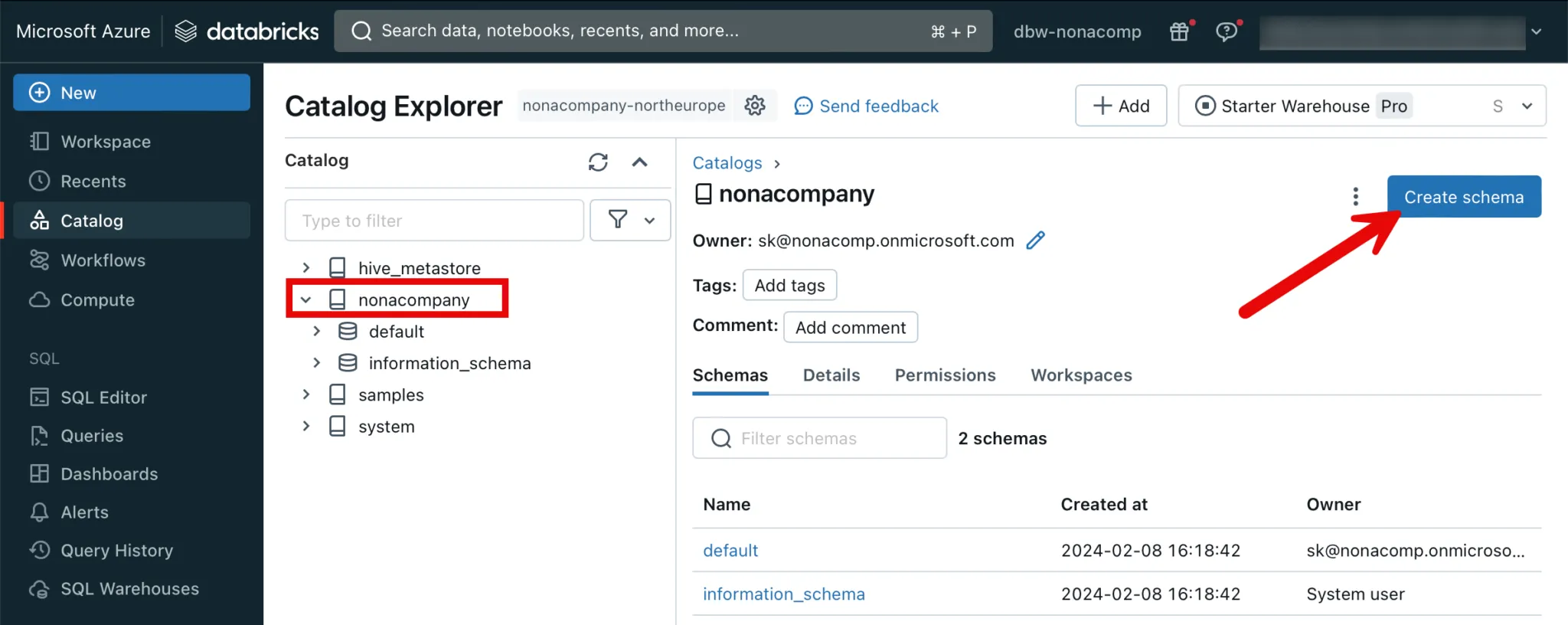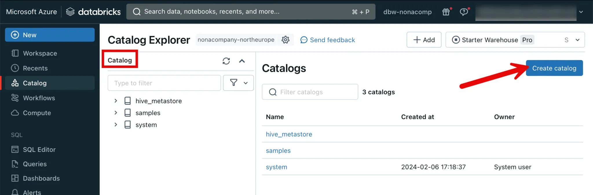 In my example, I will create a catalog. I will name it after my fictitious company NoNaCompany.