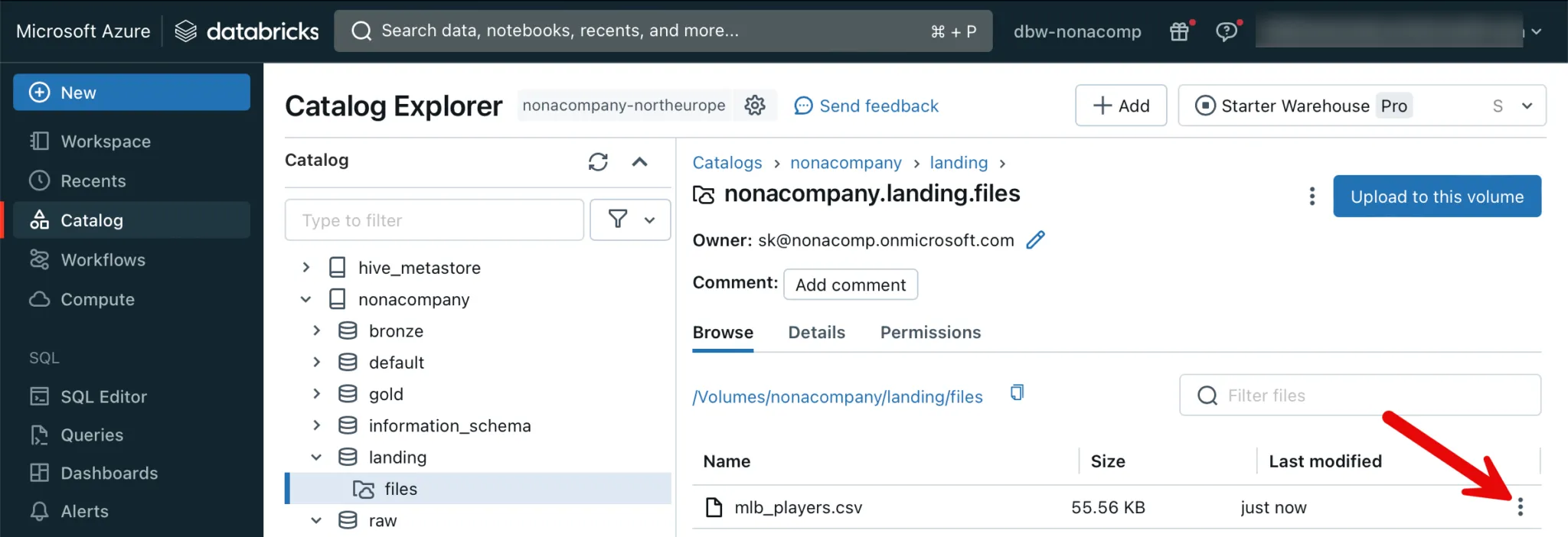 The file can now be accessed via this path: /Volumes/nonacompany/landing/files/mlb_players.csv