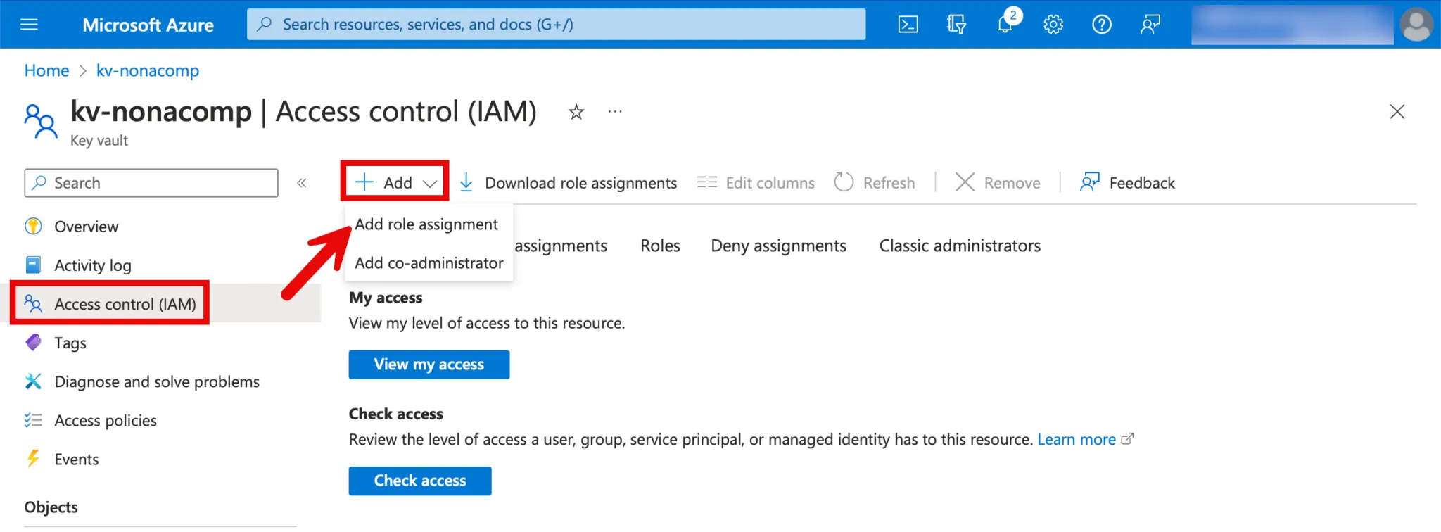 For groups/users who should only have read-only rights, we assign the role “Key Vault Secrets User”.