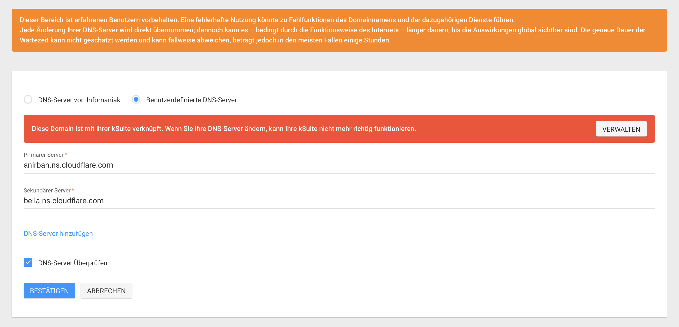 Now I point the DNS servers at the registrar to Cloudflare.